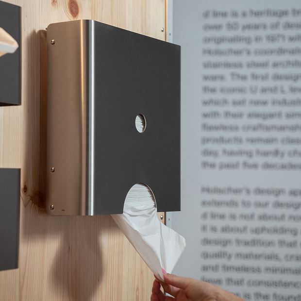 d line dispenser series, originally designed by Knud Holscher in the 1970s, has been newly interpreted and updated in close collaboration with Holscher Design.